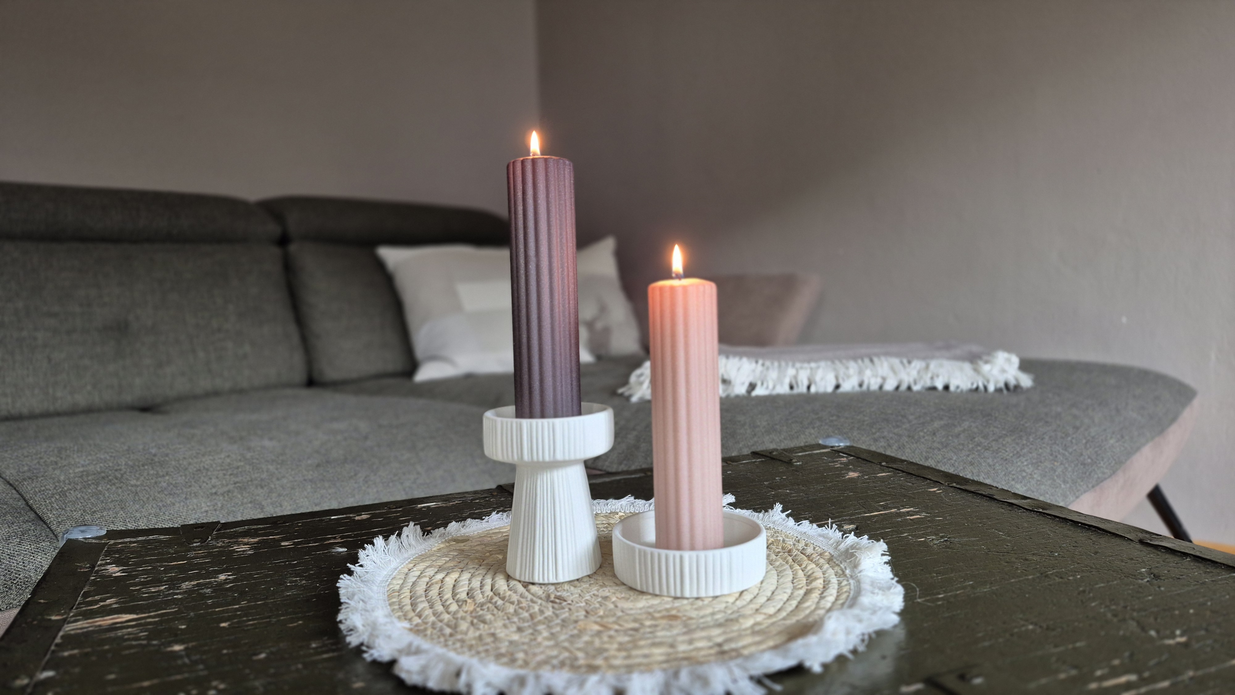 Das INGEAR-Kerzenset überzeugt durch seine moderne Rillenoptik und ist in zwei geschmackvollen Farbduos erhältlich: